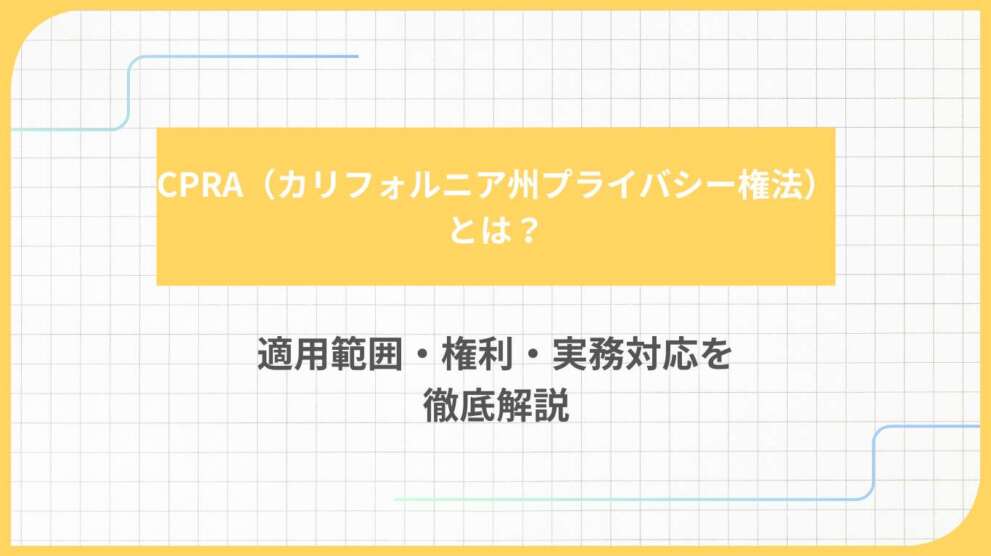 本記事では、CPRAの基本とCCPAからの改正点、そして企業が取るべき実務対応をわかりやすく整理します。プライバシー対応を強化し、データ活用を安心して進めたい企業担当者はぜひ参考にしてください。
